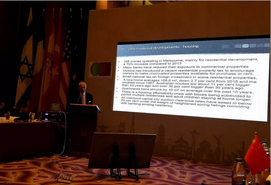 中国建筑卫生陶瓷协会常务副会长缪斌代表中国陶瓷行业作主题发言,介绍中国陶瓷产能、市场消费容量、进出口贸易、环保举措等情况