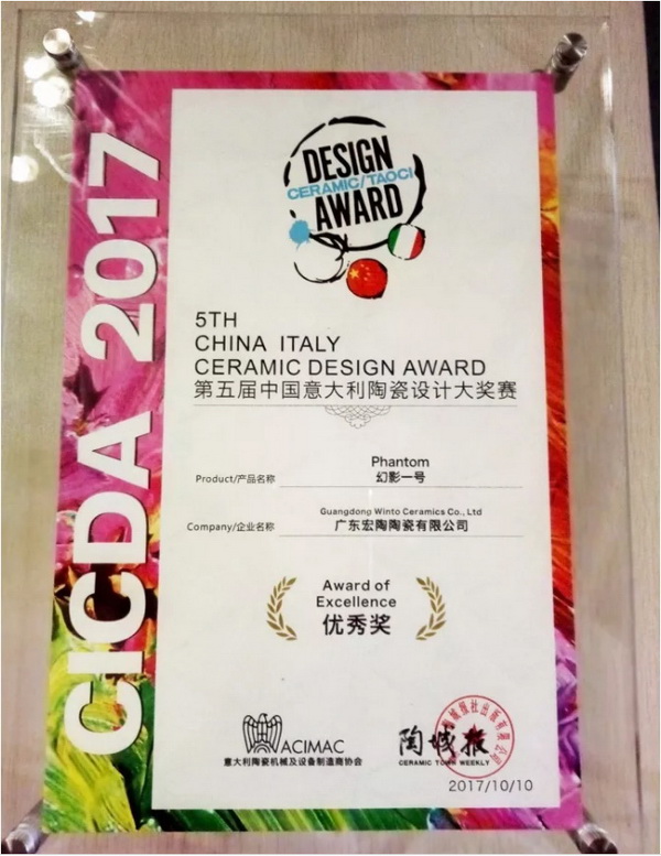 10月10日,由意大利陶瓷机械设备制造商协会与《陶城报》联合举办的“第五届中国意大利陶瓷设计大奖赛”颁奖盛典在佛山新媒体产业园科学馆举行。宏陶陶瓷新品“原石瓷抛砖”与水印图案瓷砖“幻影一号”凭借创新的设计理念与领先的制作工艺,获得业界与组委会的一致认可,荣膺大赛两项优秀奖。