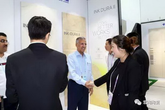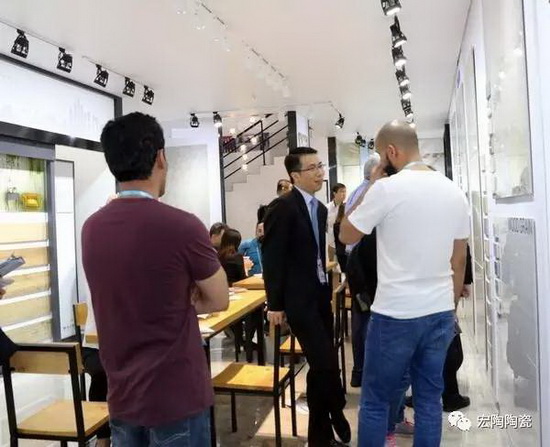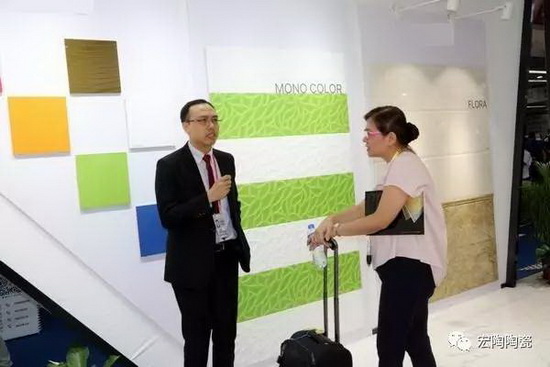宏陶所属集团出口部总经理伍总接受中央电台经济之声频道和新华社记者采访时表示,宏陶新款大理石瓷砖这次在广交会完美亮相,代表了行业更高技术和更高品质,有釉,但超耐磨,坯釉相融,突破了行业发展的瓶颈。集合了当今陶瓷墙地砖超前的科技成果和装饰技术,创造了一个全新品类,为行业发展指引了方向。产品纹理立体逼真,使用功能强大,满足不同喜好或不同空间的需求,令客商们不无惊叹称好,甚至出现了客商当天踊跃下定单的场面。