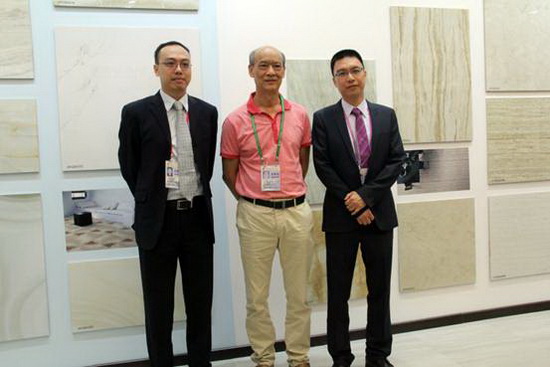 企业副总欧家瑞(中)、出口部总经理伍剑锋(右一)亲临指导宏陶参展工作