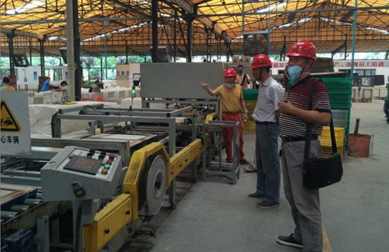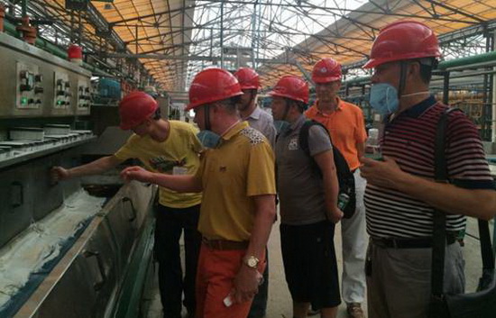 CTC工作组成员在会上阐述了当前我国《陶瓷墙地砖胶粘剂粘结强度试验用瓷砖标准样品》的使用情况以及宏陶陶瓷参与此国家标准物的研制工作的重大意义。会议结束后当天下午,CTC工作组一行三人到宏陶陶瓷佛山生产基地参观考察,与宏陶研发人员一同探讨《陶瓷墙地砖胶粘剂粘结强度试验用瓷砖标准样品》的技术要求和性能指标,并对该项国家标准物的研制进行现场指导。