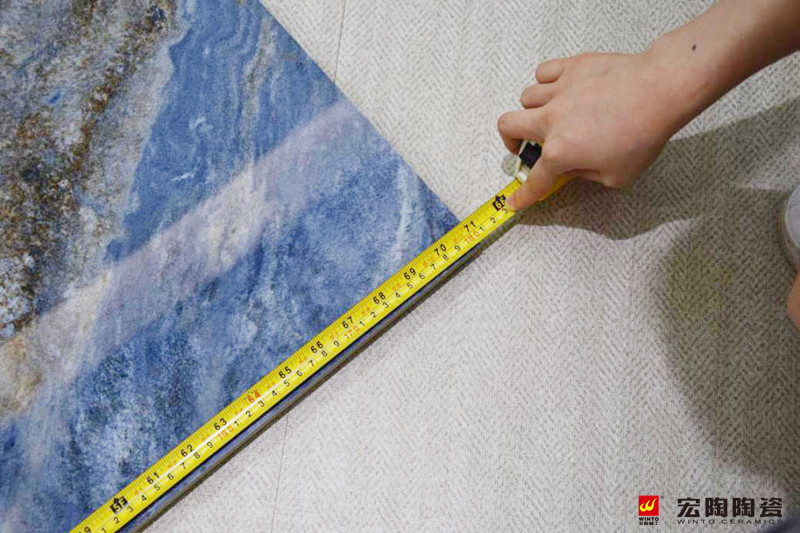 平整度:测评人员使用手机App平整仪,不断变化手机的位置,同时观察水平尺的气泡位置变化。结果:每次移动、变换手机的位置,汽泡的位置都居于中间,经测试实验证明,瓷砖没有缝隙,宏陶大板TPG1890174(六合一)的平整度极其之好。