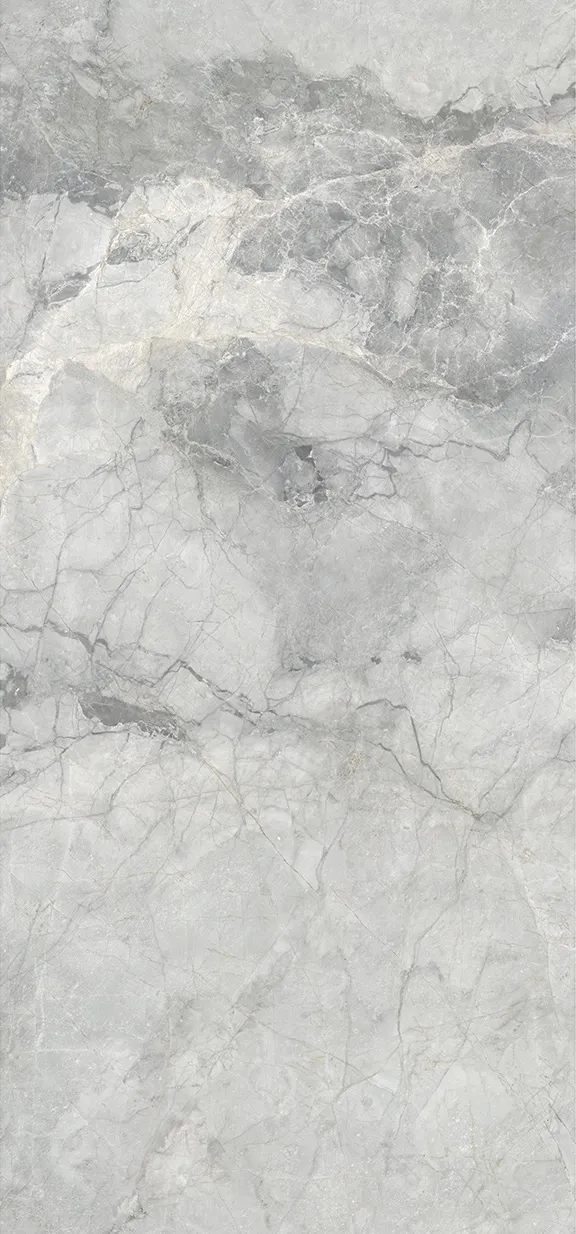 承袭青灰色基调,镶嵌着连绵起伏的肌理,如壮阔而娇媚的千里雪景,明暗有度,生动而富于变化,在动静与变化之间随意流转。高清亮光面,质感光洁晶莹,赋予空间晶润雅致的气质。