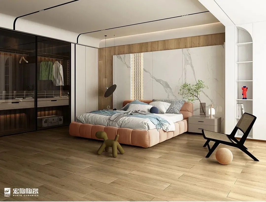 宏陶瓷砖地砖轻奢风格简洁而不随意,高级却不浮夸,每一个看似简单的设计背后,无不蕴含着极具品味的贵族气质,而这些气质往往通过精致的软装与细节呈现出来,让人在视觉与心灵上享受双重的震撼。