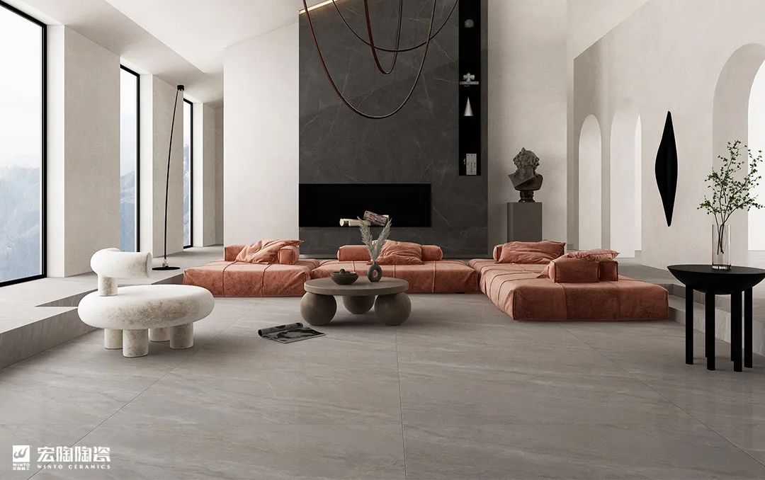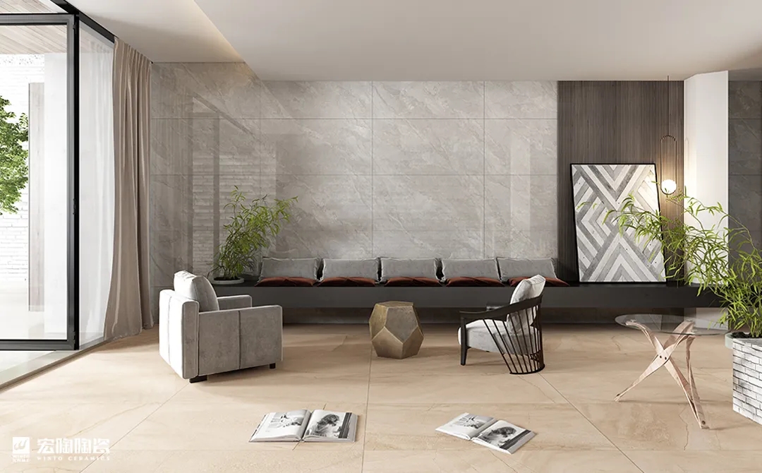 宏陶瓷砖地砖轻奢风格注重设计手法上简洁大气,但并非忽视品质与设计,而是通过材质上的奢华,不着痕迹透露出对于精致、考究生活的追求。