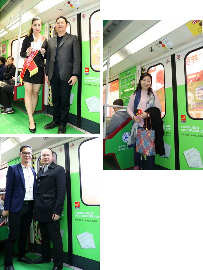 首列质量列车分为绿色车厢与蓝色车厢两种,全方位包围的布景让乘客仿佛置身于清新的森林或深邃的海洋。在蓝绿两种车厢之中,宏陶艳红火焰造型的LOGO显得越发突出,吸引了不少乘客驻足细看。扫描其中的二维码,更可了解本次广东优质•QBBSS质量列车的信息,及宏陶优质产品的相关介绍。