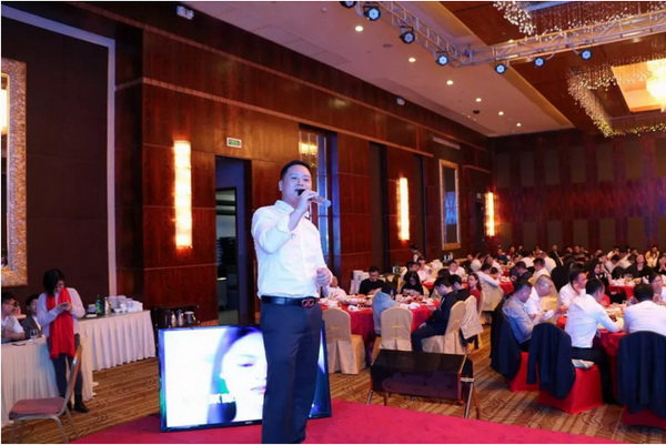 晚上7点,宏陶陶瓷迎新晚宴正式开始。宏陶陶瓷销售总经理曹刚毅首先在晚宴上致祝酒辞:2017对于宏陶陶瓷来说是奋斗的一年,是前进的一年。在即将过去的2017年,宏陶取得了一定的发展硕果,我深知这些成果的取得,离不开以厂为家的中高层管理的智慧,更离不开全体同仁的辛勤付出。在这一年,大家辛苦了!2018年是全新的一年,也是充满机遇的一年,寄语大家在新的一年里,团结一心,迎难而上,锐意进取,大胆创新,共创美好的明天!