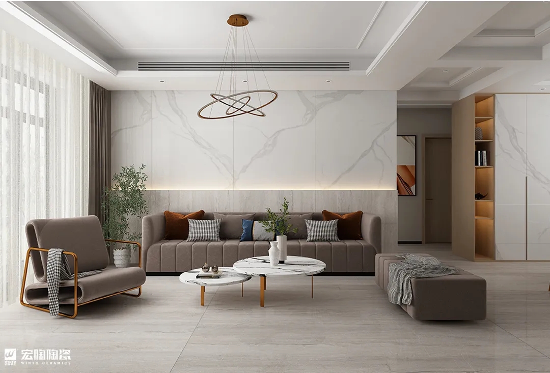 宏陶瓷砖地砖用裸妆应用到家装,似乎不刻意,但却有玄机,从空间布局到色彩搭配,再到细…