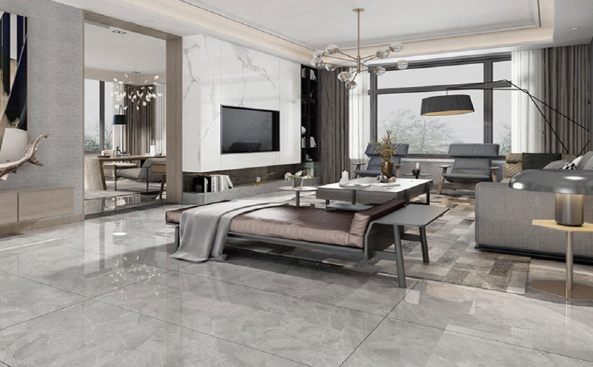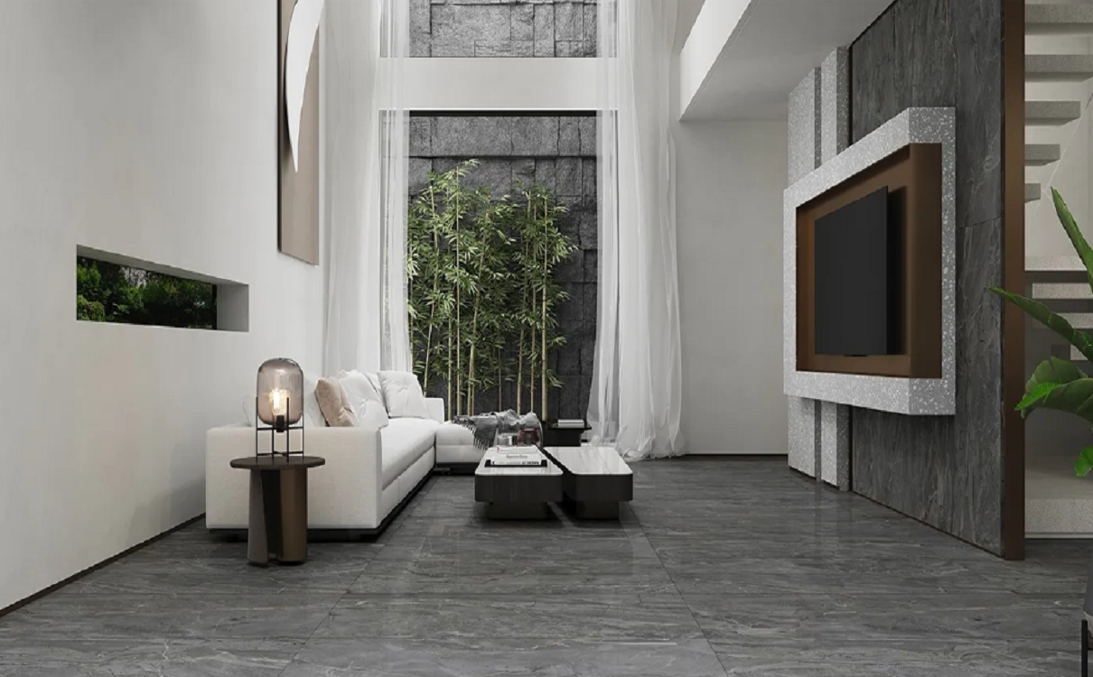 宏陶安塔利亚灰瓷砖彰显出顶级石材大气时尚之美,具有-种低调奢华的美感。