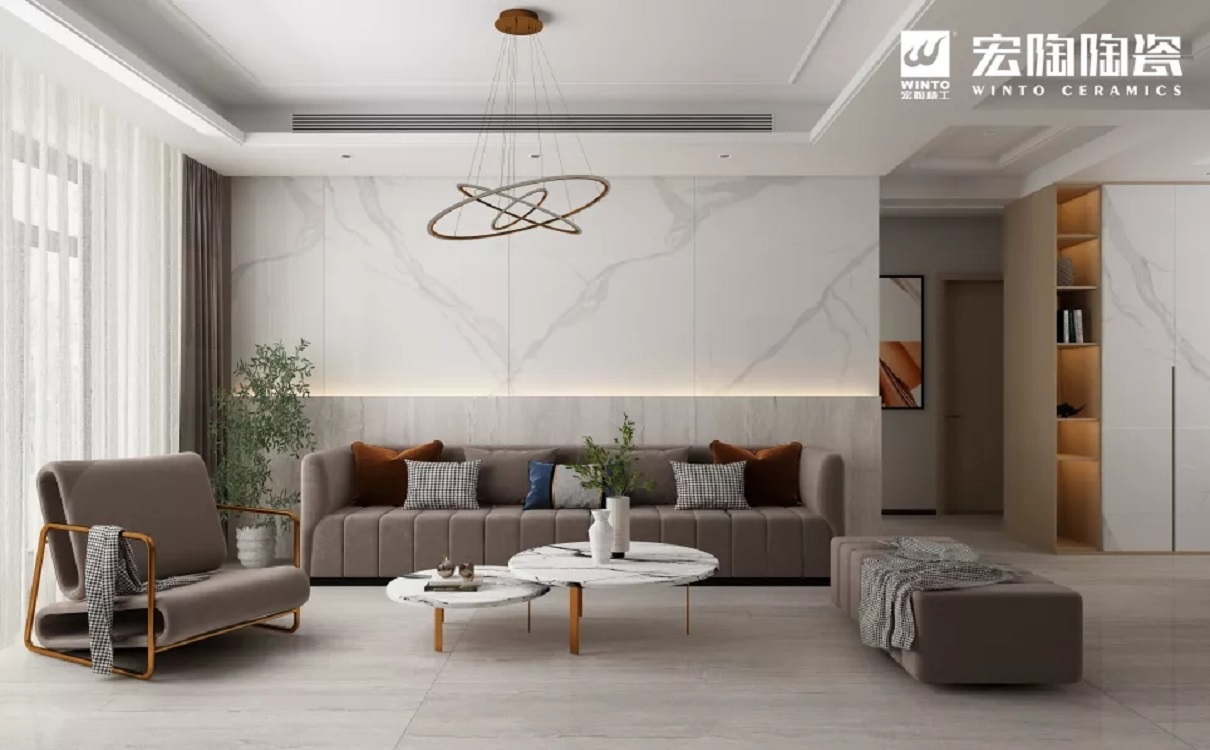 宏陶7501500mm抛釉瓷砖系列更具视觉延伸感的尺寸能创造出更加多样化家装瓷砖地砖装修效…
