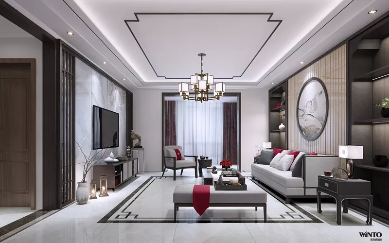 宏陶岩板新中式客厅地砖装修效果图有许多,深受消费者青昧。宏陶岩板新中式客厅地砖装修…
