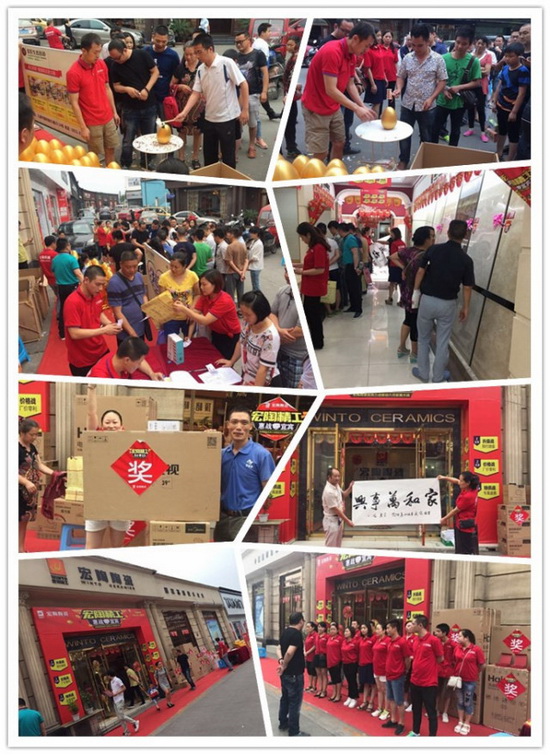 6月10日,高阳宏陶旗舰店迎来盛大的开业庆典,众多的业主如潮般涌来,火辣的天气也未能挡住他们的热情。高阳宏陶店面面积近400平米,产品涵盖了宏陶所有的主流系列产品,产品之丰富和展示风格之美名列高阳县前茅。