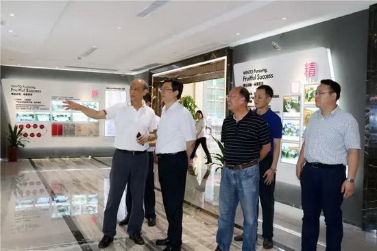 景德镇陶瓷大学江伟辉校长(左二)参观考察宏陶陶瓷展厅