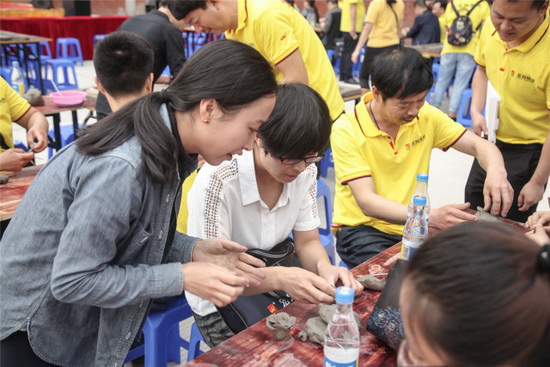 筑陶文化节以小组形式进行比赛,在砖坯基础上进行团队创造,主题围绕“古镇巨星,宏陶精工”等。以主题鲜明、团队合作、创意创作、图案设计以及陶艺技工五大方面进行评分标准。经过忙碌的分工合作,最终宏陶家人们共同献上了自己的佳作。其实,比赛只是一种经历,在同心协力中我们收获的往往更多。
