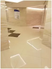 工程铺贴于当地的新建的一栋海边别墅,600*900规格的全抛釉铺贴效果自然如天然石材