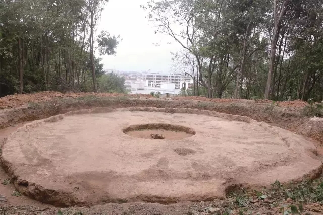一行人来到大帽岗山顶参观宝峰塔遗址,只见挖掘出的宝峰塔塔基已被包围保护起来,周边已动工建设。按照计划,宝峰塔将在原址上重建,在复原的同时,对古塔遗址进行充分的保护及展示(即在遗址上方新建一个保护罩),外观形式采用岭南传统楼阁式塔,底层直径为10.6米,总高度为55.58米。