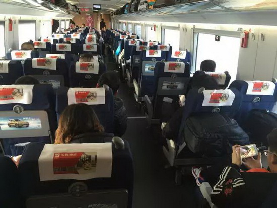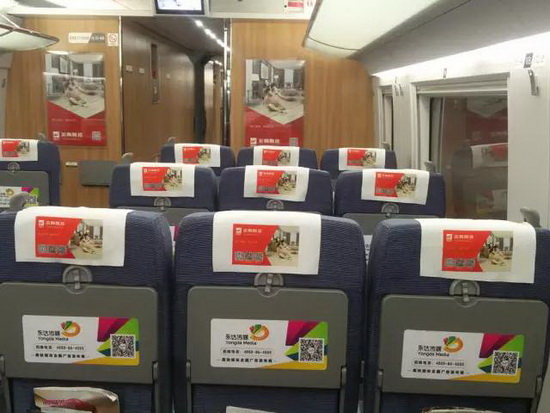 除了候车厅的广告投放,宏陶陶瓷还追加投放了贯穿南北的核心干线——哈尔滨西—武汉,安北—青岛北,上海虹桥—赣州,汉口—上海虹桥线路的列车室内宣传媒体。选择4组咽喉线路车厢投放头枕片广告和海报广告,以近距离、规模化、长时间的品牌展示空间,让品牌的内涵与目标消费者产生和谐共振,将乘坐高铁出行的高端商务人士,纳入品牌包围惯性选择中。