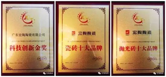 4月9日,北京人民大会堂上,宏陶陶瓷一举包揽了第五届中国建筑卫生陶瓷品牌榜“瓷砖十大品牌”、“抛光砖十大品牌”、“科技创新金奖”三项大奖。