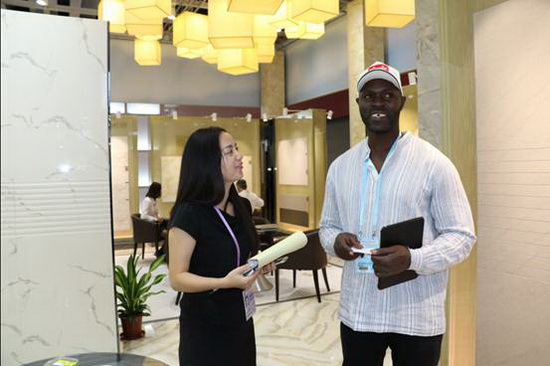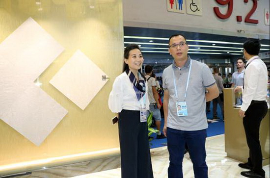 中国陶瓷十大品牌宏陶陶瓷品牌出口总经理刘娟表示,公司自2004年挺进广交会以来,每届参展都有不同层面或不同程度的创新,在本届广交会上,创新含金量尤为突出。宏陶陶瓷利用绿色特装展位平台成功推出了“原石”瓷抛砖、“自然之美”大理石瓷砖、“冰岛熔岩”瓷质抛光砖,“钻砂釉•精钻”釉面砖新品。其中“原石”瓷抛砖卡拉拉系列产品以白色主色调及灰黑渐变纹理独特大气创意设计,令海外采购商连连举起大拇指啧啧称赞,并有部分客商向宏陶销售精英们表达了到佛山宏陶陶瓷总部展馆参观进一步洽谈的迫切意愿。
