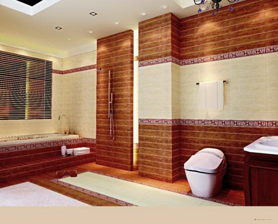 第三、大小尺寸结合。在同一空间内,选用不同色彩、不同款式的瓷砖,然后进行巧妙的搭配,往往会令空间更加生动,特别是在灯光的作用下,会给瓷砖赋予很好的色彩、光影,使其成为家居中的一大亮点。