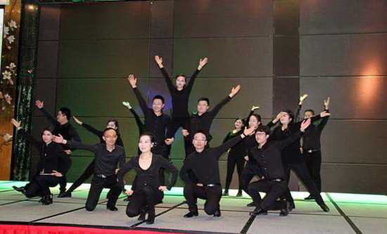 晚上7点30分,晚会正式开始。集团出口部总经理伍剑锋首先发表了热情洋溢的祝酒辞,他向长期以来信赖、支持宏陶陶瓷的海外客户以及出口部精英们表示真挚的感谢,寄语大家在新的一年克服困难、团结一致、共同努力、再创佳绩。