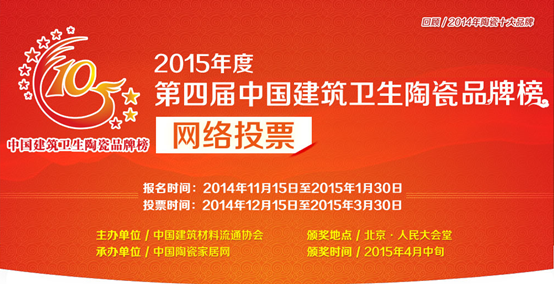 据了解,网络评选投票时间从2014年12月15日开始至2015年3月30日结束,颁奖时间在2015年4月中旬,颁奖盛典将在庄严的北京人民大会堂举行。此次评选活动时间周期较长,网友可在中国陶瓷家居网投票页面进行公开投票,每个IP每天限投20票,禁止刷票操作,网络投票结果占评选比重的30%。此次活动同时将组织专家评选团进行评审,评审结果占总评选比重的40%,中国陶瓷家居网将对参评品牌搜索量、网民关注度、网络正面、负面报道情况进行调查统计,调查情况占总评选比重的30%。