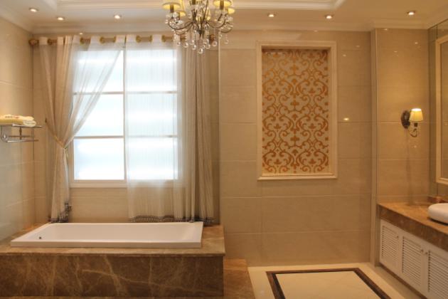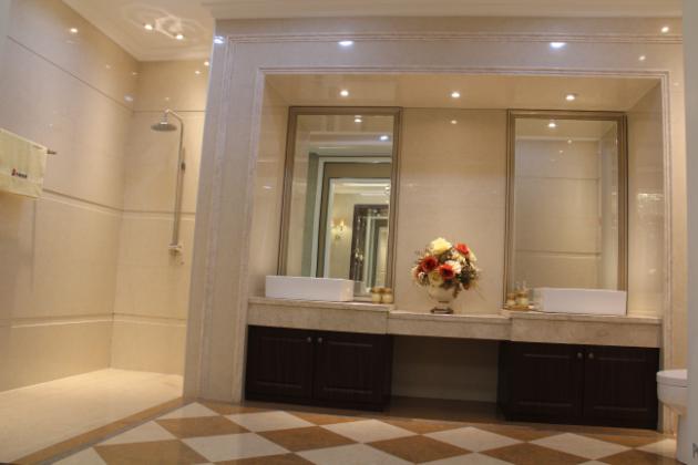 图3、皇庭玉石抛光砖铺贴空间实景拍摄,产品型号:TPVL80-101.