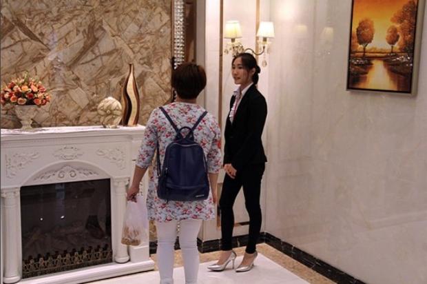 下午两点,业主们异常期待的时刻到来。超重量级的肥仔主持人登上“特供秒杀”区舞台,正式宣布半小时限时抢购的产品特价秒杀开始。他哄亮的“男高音”在大堂上空萦绕,吸引了全场的团购业主。主持人特别邀请一些业主登上舞台使劲踩踏铺在舞台上的瓷砖,有的业主用手抚摸砖面,体验瓷砖温腻的质感,频频举起大拇指,连呼好砖。
