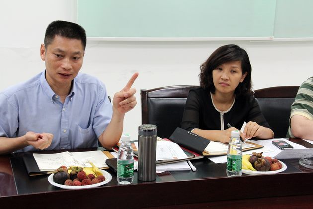 图5、《石湾陶瓷史》编委办主任霍达炎(中间)讲话(梁润拍摄)