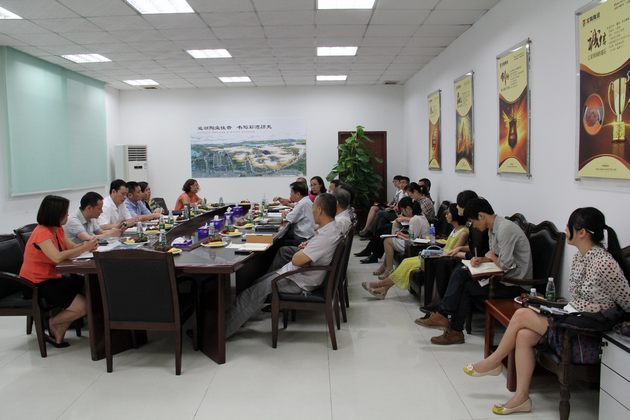 6月24日2点30分,由《石湾陶瓷史》编委办组织的《石湾陶瓷史》及《南国陶都——石湾》大型画册编撰工作座谈会在佛山瓷砖十大品牌宏陶陶瓷营销中心展厅三楼会议室召开。佛山市禅城区人民政府中共佛山市禅城区石湾镇街道工作委员会政务委员、书记李军,禅城区石湾镇街道宣传文体局局长范翠燕、副局长杨洪,石湾陶瓷博物馆馆长温桂梅,宏宇·石湾陶瓷文化基金会理事会副会长周棣华、会员卢敦穆,执委会主任刘孟涵、副主任霍锐锦,《石湾陶瓷史》编委办主任霍达炎等领导,《石湾陶瓷史》(古、近代卷)主编黎丽明、编委陈雪兰、汤宁宁,(当代卷)编委罗青、杨晓明、潘春花,编委办梁润,以及《广州日报》记者20多人,出席了会议。