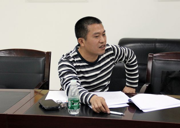 图3、石湾陶瓷史编委办公室霍达炎(右一)希望编委分工合作,严格把关