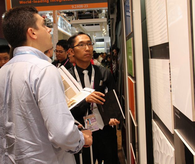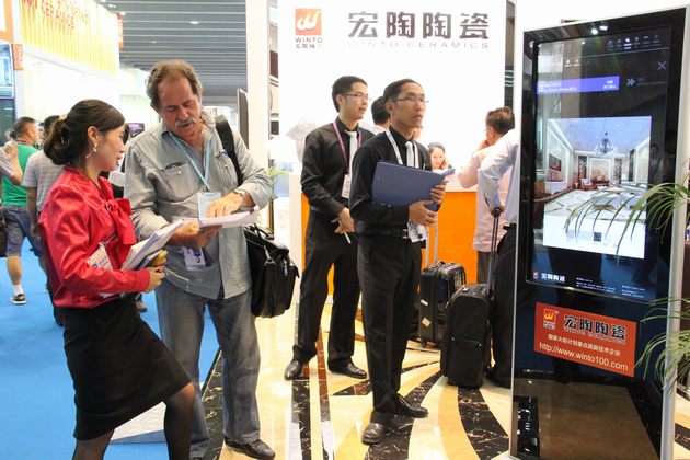 10月15日至19日,在第114届中国进出口商品交易会(简称“广交会” )上,宏陶陶瓷作为中国建陶行业的知名企业,又一次出现在广交会9.2号馆建材馆的最显眼位置,并以承载宏陶全线产品的动态化声、色、光触摸屏吸引众多采购商驻足触摸体验,成为全馆人气最旺的展位之一。