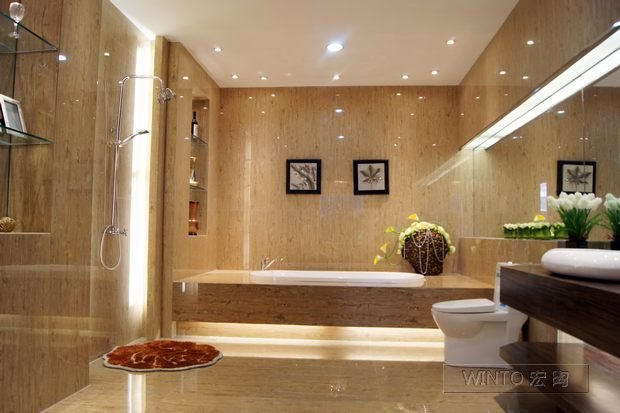 图3、原木尚品木纹砖铺贴卫浴空间实拍