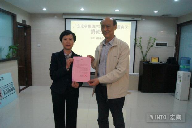 另外,宏陶陶瓷还在公司内部下发了抗灾捐款倡议书,提倡广大员工贡献爱心,积极捐款。公司多个部门响应公司倡议,员工纷纷捐出款项,购买生活用品通过快递公司(免费)直接寄到雅安灾区。