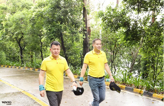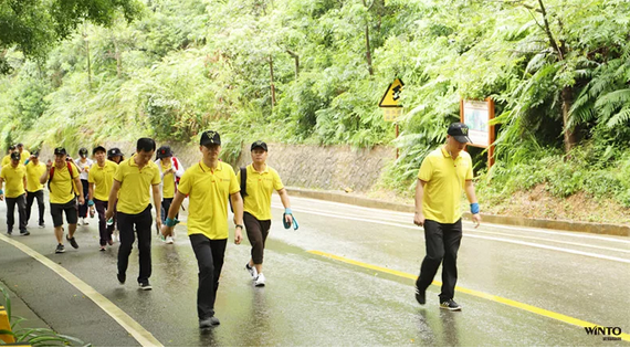 宏陶员工之间一句句鼓励的话语,是大家前进的动力。蜿蜒崎岖的山路、空旷的山谷,登山场面一片激情活跃。
