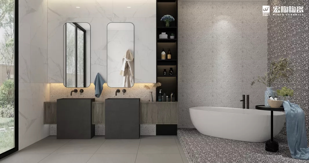 奢华既可以定义为一种生活格调,又可以理解成一款装饰风格,每一种色彩与浴室图案的瓷砖地砖所营造出的氛围不尽相似,请跟随宏陶瓷砖地砖小编一起,来看一下2020年宏陶瓷砖地砖流行色彩搭配装修风格,一种瓷砖,一种风格!